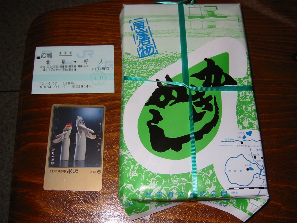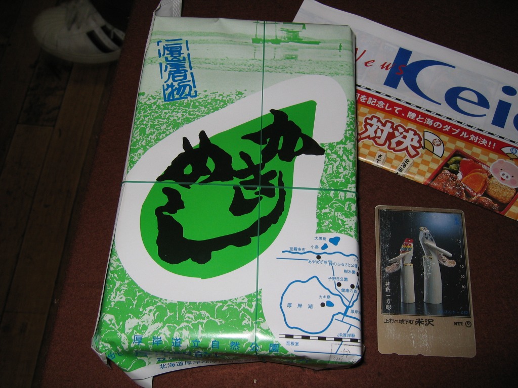 それより疑問なのは、現地販売人と実演販売人の関係がいまいち明らかでないこと。電話番号が前者の「0153(52)3270」に対して後者が「0153(52)5668」であり、掛紙は意匠こそ似るものの地図が180度回転していたり調製元の名称が異なったり。とある百貨店で実演販売人に電話番号の怪を質問したら、3270が偽物などと言われてしまった。2005年内にこの電話番号での実演販売はなくなったと見える。