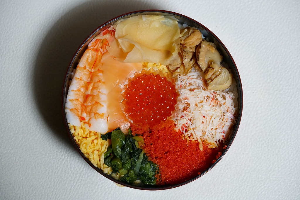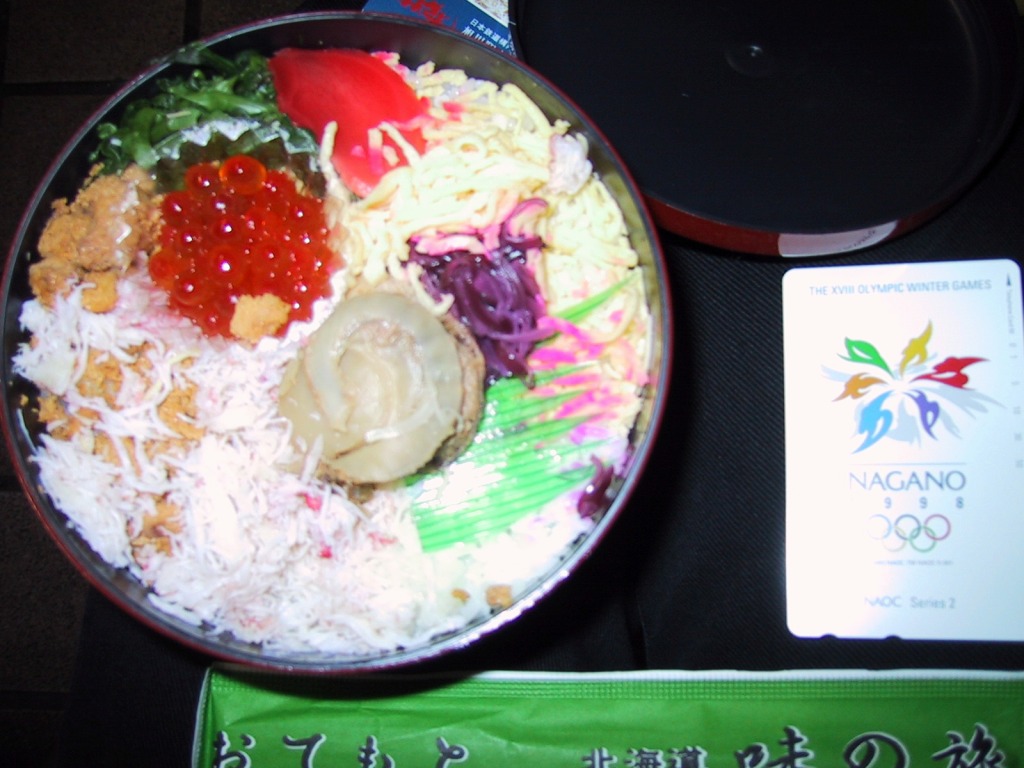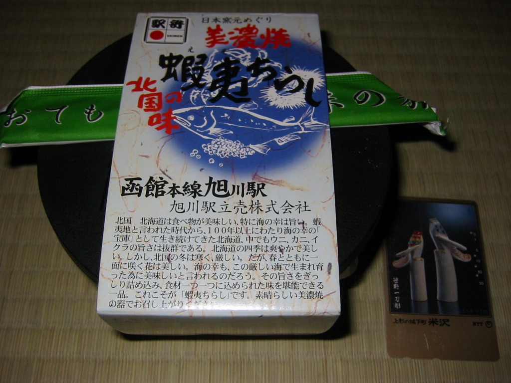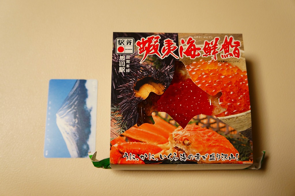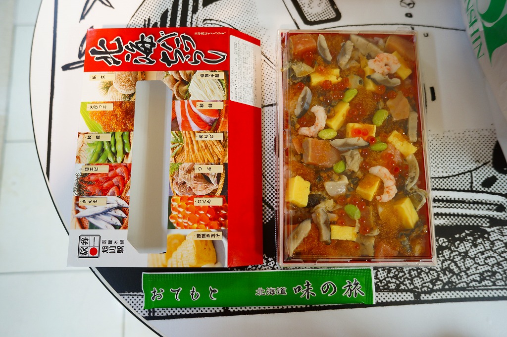 2002(平成14)年に発売。なぜか岐阜県美濃焼の美しい容器を使用し、中身は酢飯の上にウニ、カニ、イクラ、帆立、ワカメ、鮭などが載る、他の旭川駅弁とよく似た内容。味も同じようにうまい。