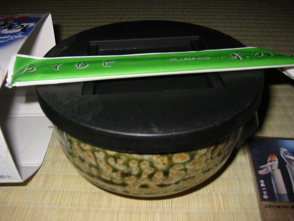 福井の業者が「日本窯元めぐり」として2001(平成13)年に加賀温泉・名古屋・豊橋・草津・岡山・和田山の各駅の駅弁業者に声を掛け、同じ大きさの容器と同じ値段で6種の駅弁をプロデュース、駅弁大会に売り込んだのだろう。2002年にたしか3種の新種が出た。現地で入手できるかは不明。現存しない模様。