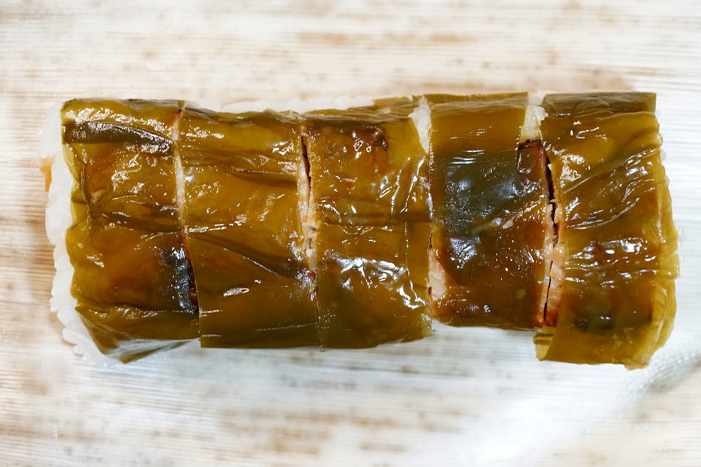 新函館北斗駅で駅弁が買えるキヨスクで、駅弁と一緒に売られていた棒寿司。大葉や白ごまを混ぜた酢飯に、薄身の真ほっけと生姜を貼り、春採り昆布で巻いた小柄な棒寿司を1本、透明なフィルムで密封し、竹の葉に包み、商品名や紹介文を記した黄色い掛紙を巻く。ホッケは焼き魚では全国の惣菜や居酒屋のメニューでおなじみでも、寿司などそうでない惣菜や弁当は珍しいと思うし、駅弁や駅売りの弁当ではとても珍しく、ホッケの棒寿司は見聞きしたことがない。食べればサバなどメジャーなものに比べて、飯が多く身が少なく味の薄いものに思えても、この内容が駅で買えること自体を旅で味わう。函館駅の駅弁でもごくまれに、幕の内弁当タイプのものにホッケの焼き魚が入ることがある。