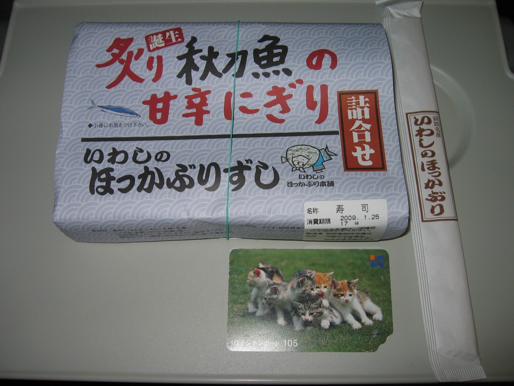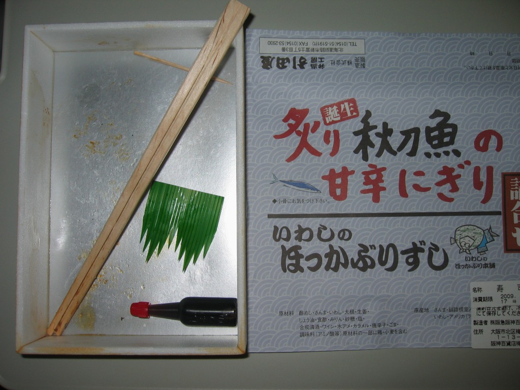 デパートでの実演販売にて上記の駅弁「いわしのほっかぶり」と併売される商品のひとつ。いわしのほっかぶりが4個、サンマをあぶった、というより焼いたものが4個、「いわしのほっかぶり」と同じ容器に入っている。けっこういい値段がするが、催事場ではちゃんと売れていた。