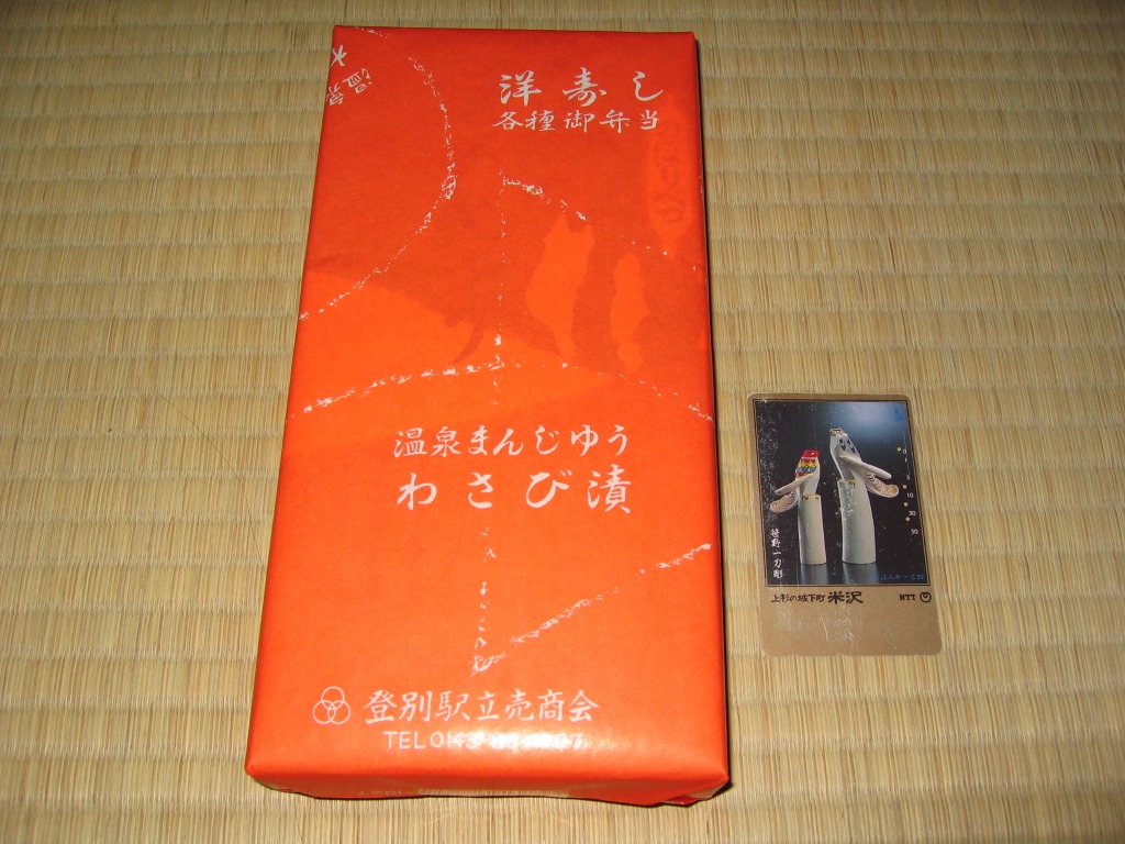 登別駅の駅弁屋の温泉饅頭。焦げていないのに濃い茶色をした栗まんじゅうが10個、個別包装でトレーに並べ、まるごと密封して箱詰めされ、商品の包装紙と駅弁屋の包装紙に包まれていた。昭和時代にはよくあったらしい、駅弁屋の甘味や饅頭も、21世紀には数少ないもの。