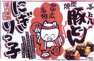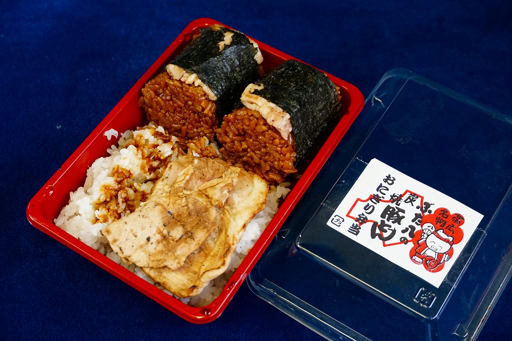 売店での商品名は「豚どんおにぎり(2個)」。下記のとおりおそらく2000年代から、帯広駅で場所を変えながら売られ続ける。過去には「にぎりっ子」という名前で売られ、市販の時刻表での駅弁情報ではその名がみられ、今回2025年に買えたものは小さな惣菜向けプラ容器に貼ったカラーコピーの紙片にもその名がみられるが、普段はその名がない全商品共通の紙片を使う模様。