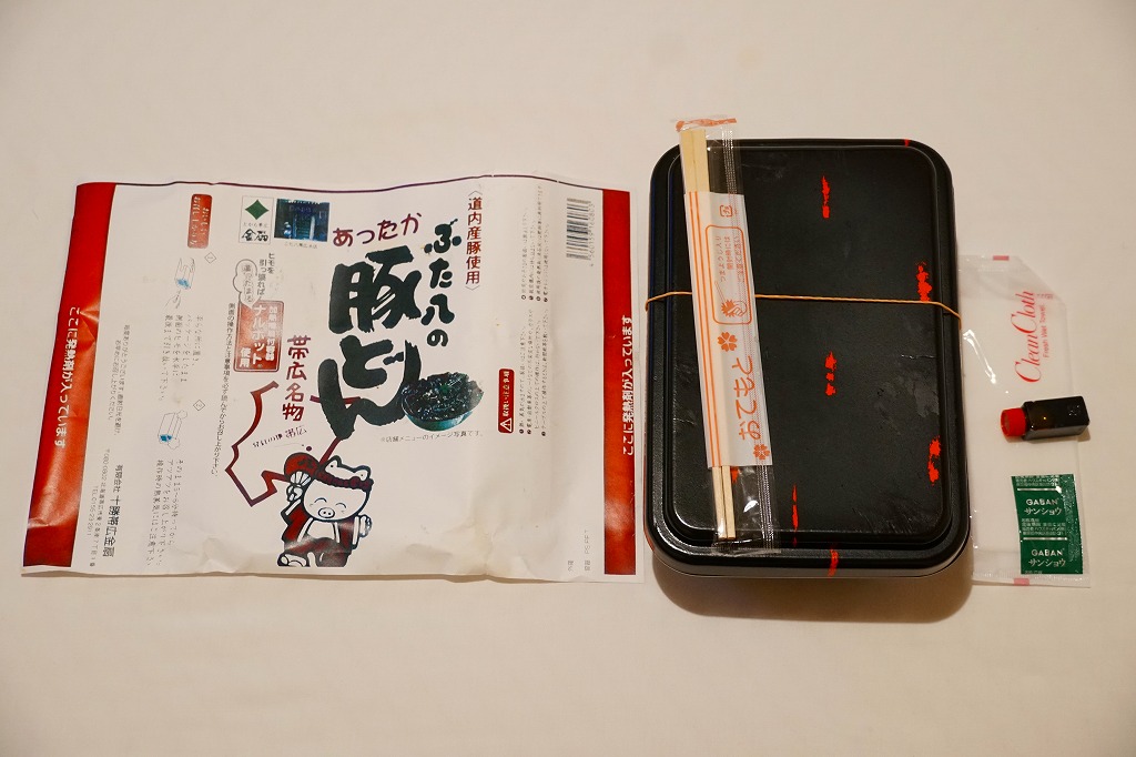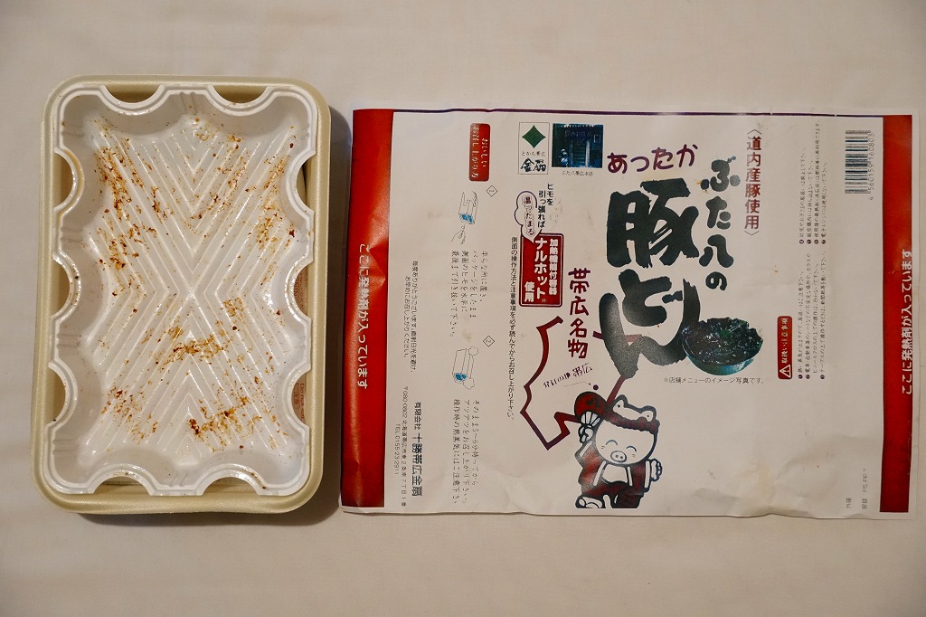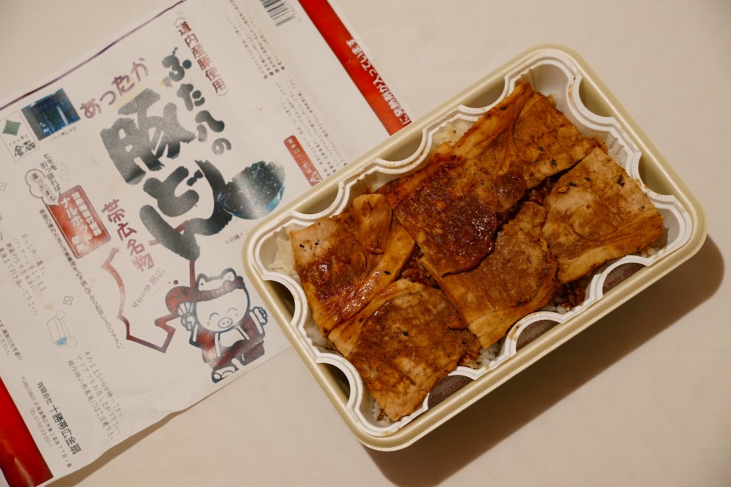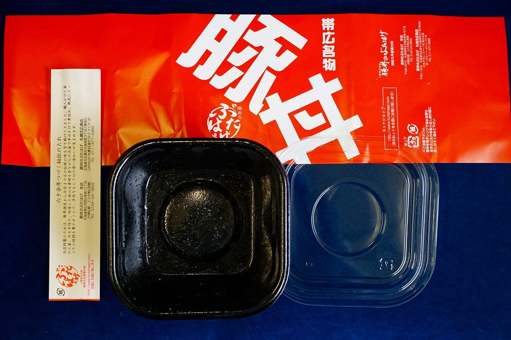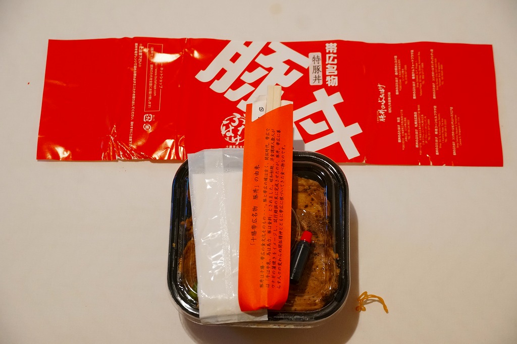 帯広駅の名物駅弁の、加熱機能付き容器版。長方形の加熱機能付き容器に、カラーコピーがかすれた掛紙を巻く。2020年までにはスリーブがこの掛紙に替わったらしい。中身も同じ、帯広名物の豚丼。冷めても悪くないと思うが、やはり暖まったほうがうまい料理だと思う。価格は2006年時点で1,100円、2012年時点で1,200円、2022年時点で1,300円、2023年時点で1,400円。