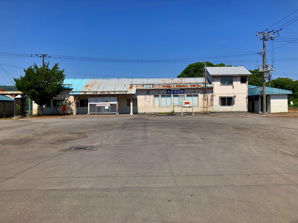 大沼公園駅の隣の駅。七飯町(ななえちょう)は北海道の南部にある、人口約2.7万人の農産地。内地や本州と蝦夷や北海道内を移動する陸路の途中にあり、開拓に加えて交通や戦争の歴史も刻まれるほか、鉄道の開通で大沼が観光地として発展した。大沼駅は地図や路線図を見る限り、函館本線が四方に分かれ道路も交わる要衝に見え、駅の規模も大沼公園駅より大きいが、町はまばらで客の利用も少なく、特急も止まらず、駅弁は第二次大戦の前後の一時期のみ売られた模様。大沼だんごも今はこの駅のものではない。1903(明治36)年6月28日開業、北海道亀田郡七飯町字大沼町。