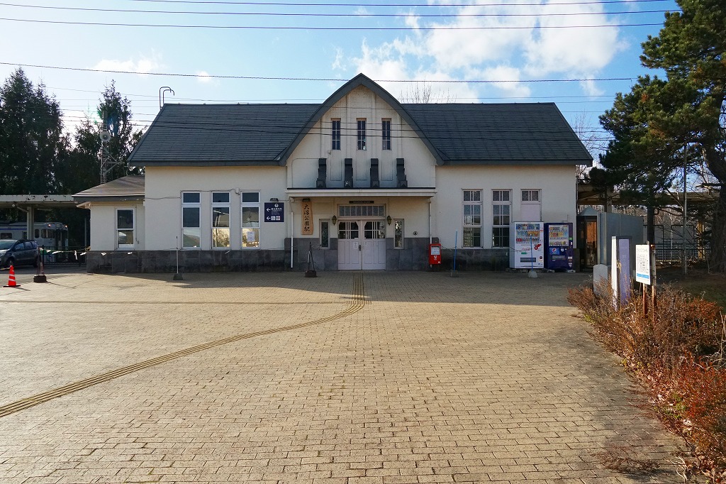 函館駅から特急列車で約20分。国定公園に指定されている大沼への玄関口で、駅前にはレストランやホテルや駐車場が立地、観光シーズンには鉄道と自動車の観光客で賑わう。かつて「大沼だんご」の駅売りが名物であった。現在は駅構内で買うことはできないが、駅前に店舗があり、観光客で賑わう。1908(明治41)年6月1日開業、北海道亀田郡七飯町大沼町。