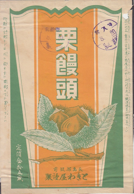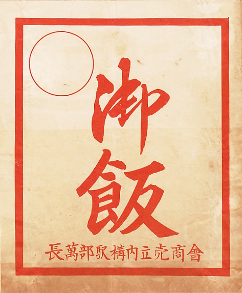 1920年代の調製と思われる、昔の長万部駅弁の掛紙。品名のとおり弁当でなく、まんじゅうの掛紙だろうが、体裁は駅弁掛紙のそれである。調製元のときわ屋は、第二次大戦前の長万部駅で餅や饅頭を販売した松永乙雄の屋号かどうか。1942年に現在のかなやへ5名で合併したのだろう。
