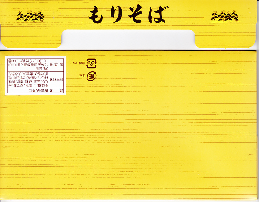 1960年代のものと思われる、昔の長万部駅弁のふた。「おしゃまんべ名物 特製 もりそば」の表記は、当時も今も変わらない。今は四角い背景が、当時は暖簾(のれん)だったことがわかる。