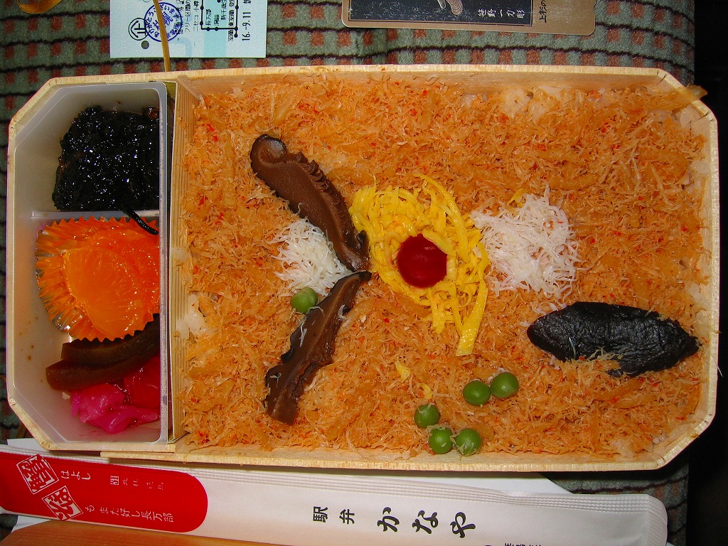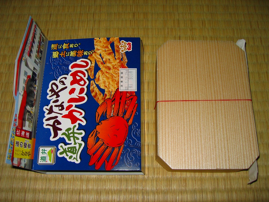 中身こそコンビニの再現駅弁っぽい見栄えと分量だが、食べてみればかなやのかにめしの駅弁の味が出ていると思う。駅弁のかにめしそのものが、駅の中では買えなくなって、事実上ドライブインやクルマの弁当になったことを、これで表したのかもしれない。2007〜2008年の駅弁大会シーズンのみの販売か。