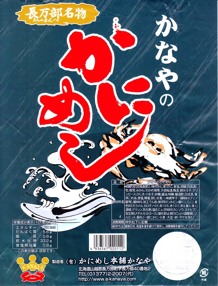 - 有限会社 かにめし本舗かなや 北海道山越郡長万部町字長万部40−2 01377(2)2007 http://www.e-kanaya.com/