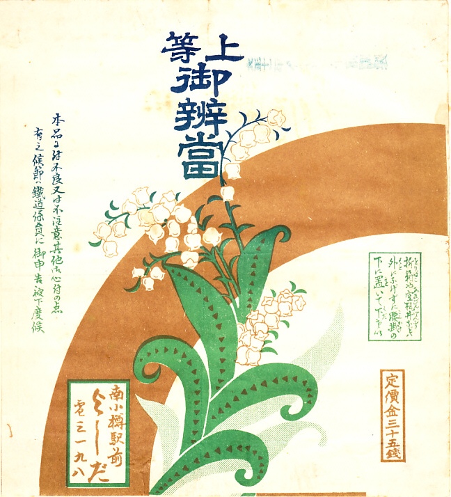 1923(大正12)年8月7日の調製と思われる、昔の南小樽駅弁の掛紙。函館本線が手宮線を分けた南小樽駅には、現在の小樽駅とは別の構内営業者がいて、駅弁を販売した。第二次大戦中の1943年に小樽、南小樽、銭函、余市駅の構内営業者6名が合併、1948年に解散した後、南小樽駅に駅弁は残らなかった。