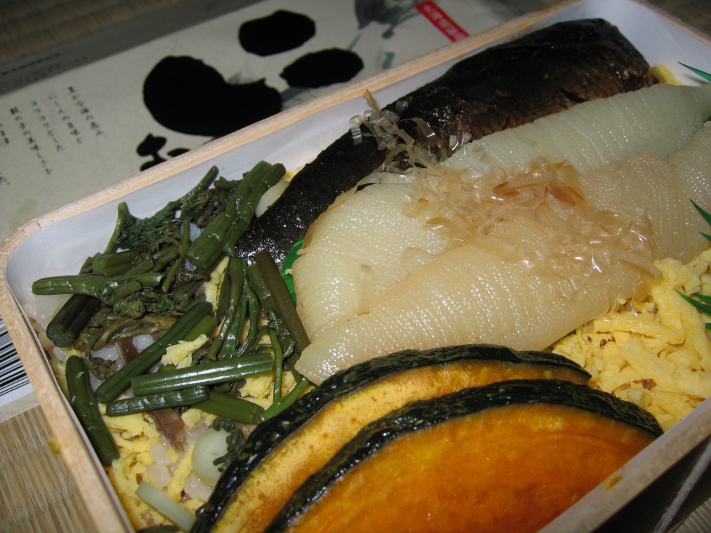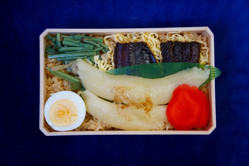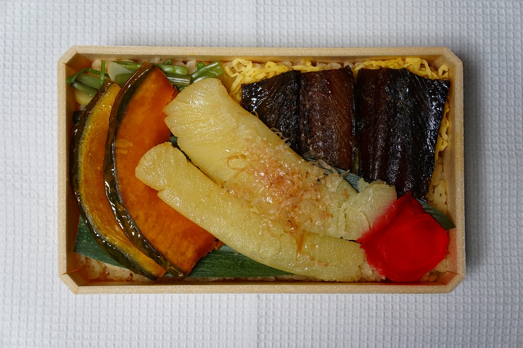 容器も中身も価格も、上記の駅弁大会版とおおむね同じ。それと比べて、かぼちゃ天がなくゆで卵があるなど、中身が少し違うほか、2本のカズノコが薄味で柔らかい気がした。現物に調製の情報がなく、いつどこで誰が作っているかは分からなかった。