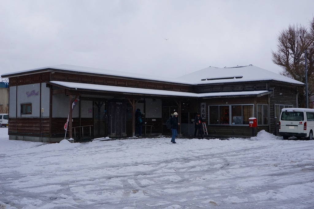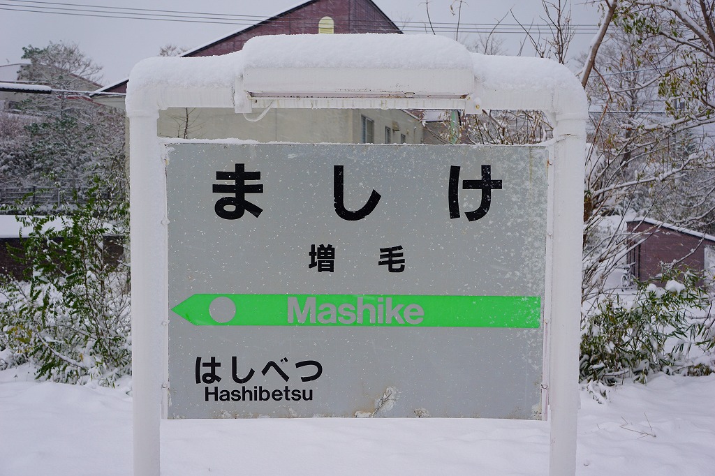 留萌駅から列車で30分。増毛町は北海道の北西部で日本海に面する、人口約4千人の港町。かつてニシン漁や北方警備、地域の行政や経済の中心として栄え、鉄道が通じた。駅前には当時の町並みや造り酒屋が残る。駅弁はないが、駅舎に入居する海産物店で弁当を販売していた。1921(大正10)年11月5日開業、2016年12月4日限りで廃止、北海道増毛郡増毛町弁天町。
