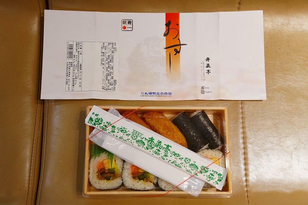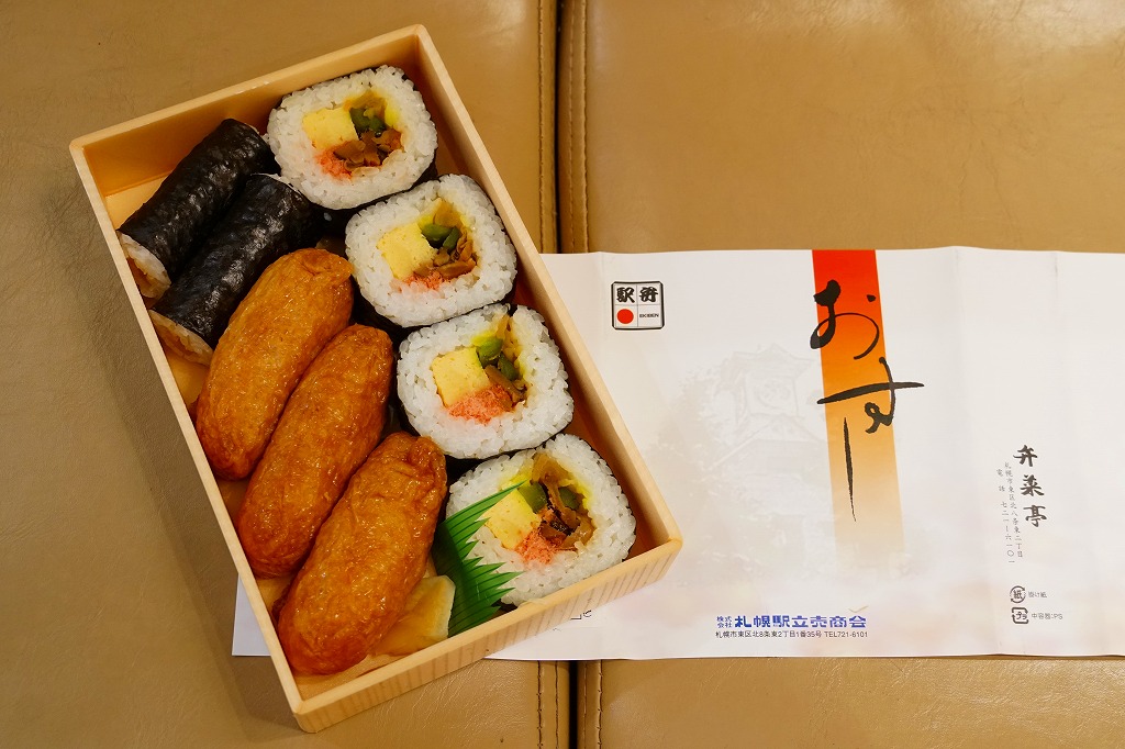 札幌駅に古くからあると思われる駅弁。細身のいなりずし3個、かんぴょうの細巻き2個、太巻き4切れを、平たい長方形の容器に詰めて、商品名を書いた掛紙をかける。昭和時代あるいはそれ以前からの、かつて普通弁当と定義された寿司駅弁の姿を今に残す。駅でなかなか出会えない駅弁で、買うのに約20年もかかった。価格は2010年時点で460円、2014年4月の消費税率改定で480円、2023年時点で530円、2024年11月から580円。
