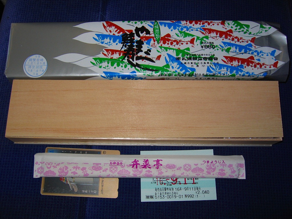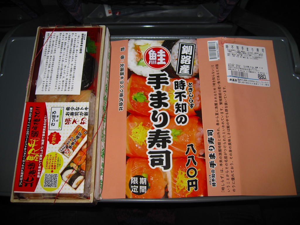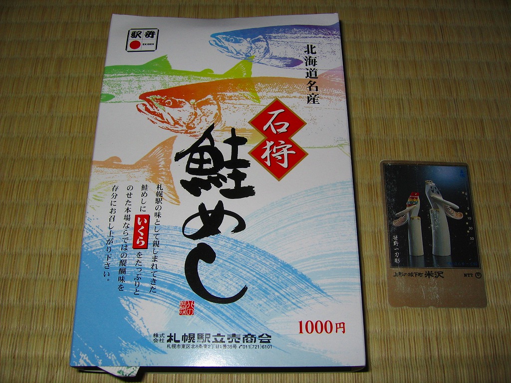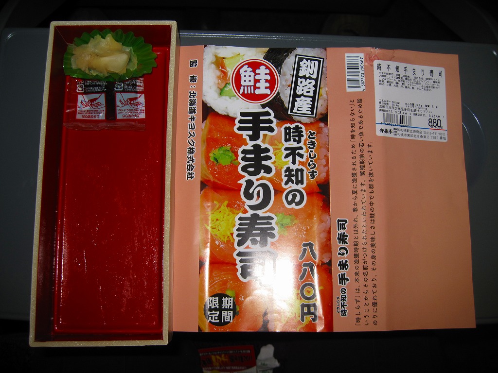 今では全国の駅弁や空弁として同じような商品が出ており、それらを紹介するサイトの運営者としては見慣れたもの。しかしこれは24時間しか日持ちがせず、中身は珍しく密封パックでなく、そして汁が垂れず臭いはなく、淡い香りとみずみずしさは特筆もの。これだから札幌駅の駅弁はハズレがない。公式サイトによると2010年時点で販売を終了した模様。