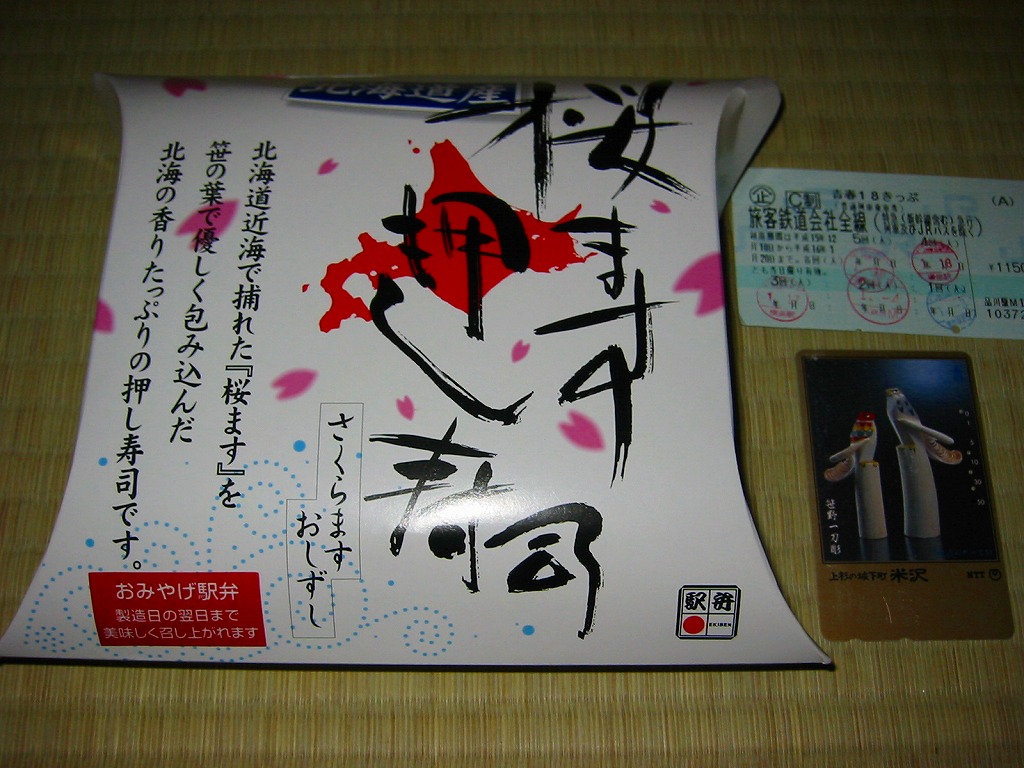 リクルートが北海道内で発行する月刊旅行情報誌「じゃらん北海道発」とのタイアップで、2003(平成15)年の9月から12月まで道内の8駅で各1種類が販売された「新・ローカル駅弁」の、札幌駅バージョン。富山駅弁「ますのすし」のようなボール紙の立体容器に、小柄な木製の押寿司容器が入る。模造1枚と本物2枚の笹の葉に包まれた中身は、北海道米ほしのゆめの酢飯の上に北海道近海で獲れたというサクラマスの厚い切り身を載せるシンプルなもの。だいぶ少量ではあるが風味は良い。また、パッケージとしおりの解説文が過不足なく好感が持てた。公式サイトによると2010年時点で販売を終了した模様。