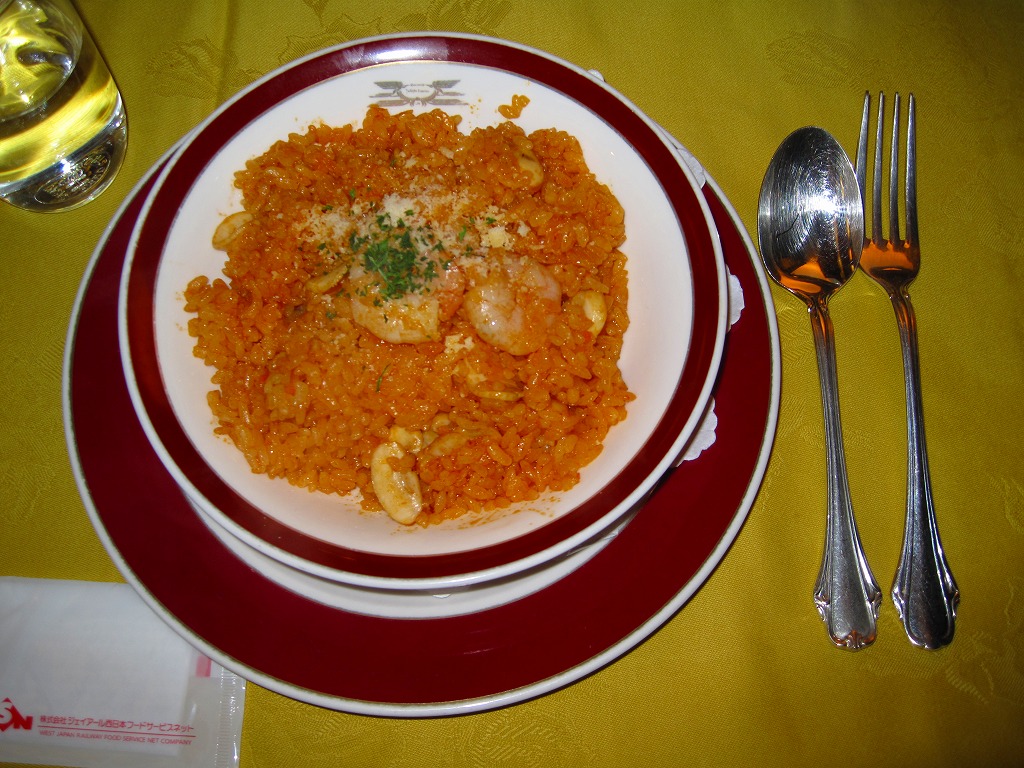 大阪発札幌行の寝台特急列車「トワイライトエクスプレス」のパブタイムで食べた夜食。見てのとおりの海老ピラフ。海老は2個しかないけれどもぷりっぷり、ナッツが味のアクセントになり、バターもたっぷり使われていそうな高カロリー食。そんな体験も、2015年3月13日限りの列車の廃止により過去帳入りした。