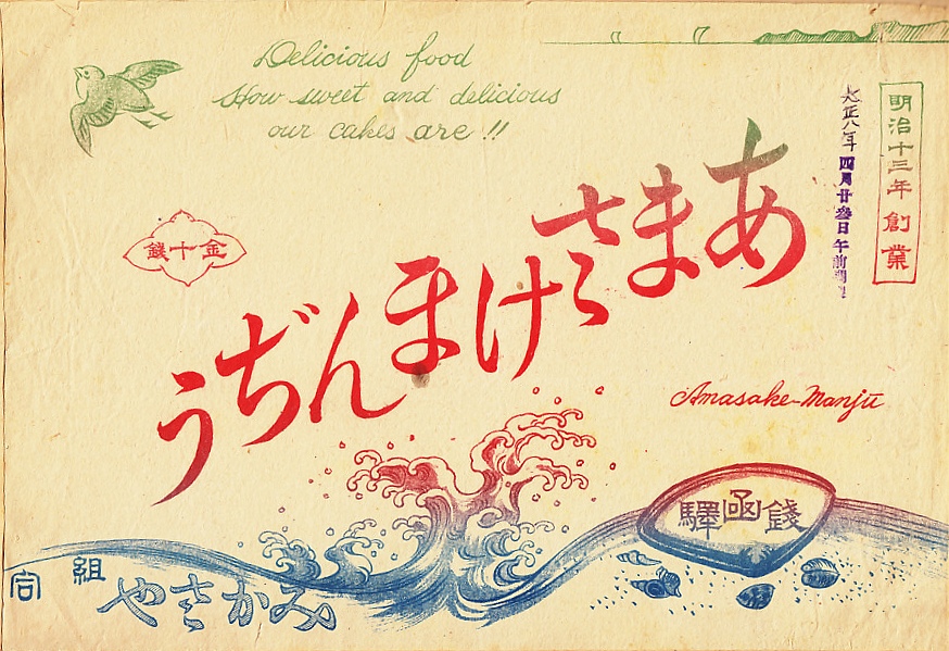 1919(大正8)年4月23日午前の調製と思われる、昔の銭函駅弁の掛紙。漢数字の調製印は、大正時代に特有のものに感じる。「大正」の手書き文字は、収集者により書き加えられたもの。銭函駅では1880(明治13)年から第二次大戦頃まで、酒饅頭が立ち売りされていたという。これを北海道最初の駅弁とする説が2000年代に現れ、駅弁発祥宇都宮説より時期が古いことから日本最初の駅弁とする説が、ウィキペディアに書かれている。