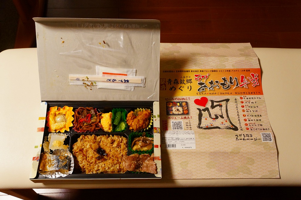 2013(平成25)年8月1日の発売。掛紙に書かれるとおり、公益社団法人日本青年会議所東北地区東北ブロック協議会の2013年度「アカデミー大学」で生まれたお弁当。調製元のつがる惣菜とのタイアップとも紹介される。