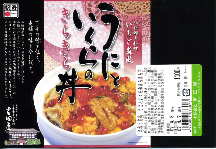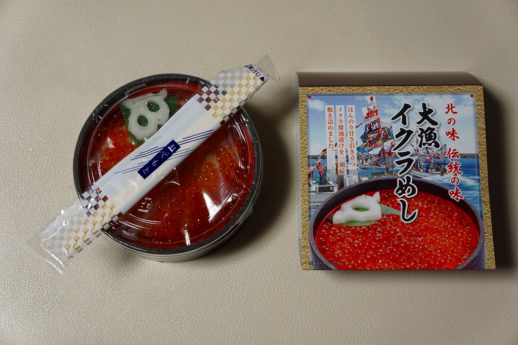 2016(平成28)年10月30・31日に、全国のイトーヨーカドーで大々的に販売。黒く丸い容器に白飯を詰め、イクラでそのすべてを覆い、小さなレンコンを添えるイクラ丼。小樽駅などの名義で催事場に出てくるタイプと同じもの。これが駅弁マークのないスリーブの記載によると「北の味 伝統の味」なのだとか。主にスーパーの駅弁大会で、まれに東京駅で、ごくまれに八戸駅で売られた模様。2018年までの販売か。
