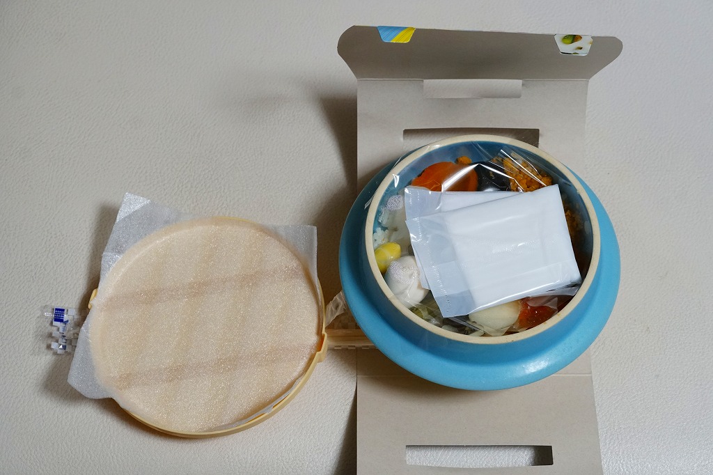 高価なカップ麺を作るイメージで、この操作を列車内でやるのは面倒か困難かもしれないが、風味に駅弁では稀なみずみずしさが広がるし、見栄えもキラキラしている。今後に東北や北海道の駅弁で流行りそうなスタイル。