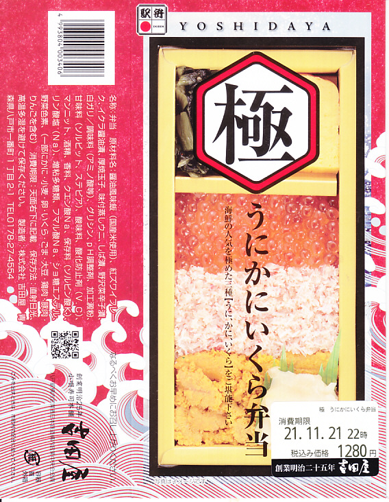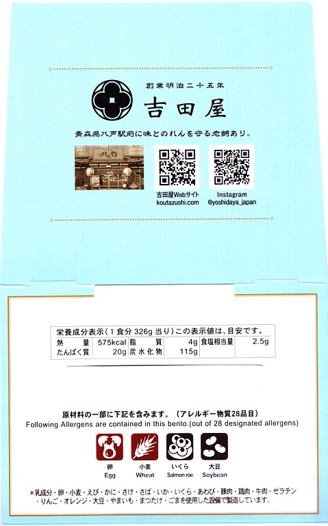 明治時代からの八戸駅の駅弁屋である調製元は、2010年には東北新幹線の全線開業で新青森駅に進出し、2013年には東京に工場を構え、2015年の北海道新幹線開業では新函館北斗駅の駅弁屋にもなるようなので、いったいどこの駅の駅弁や駅弁屋と呼ぶべきか。