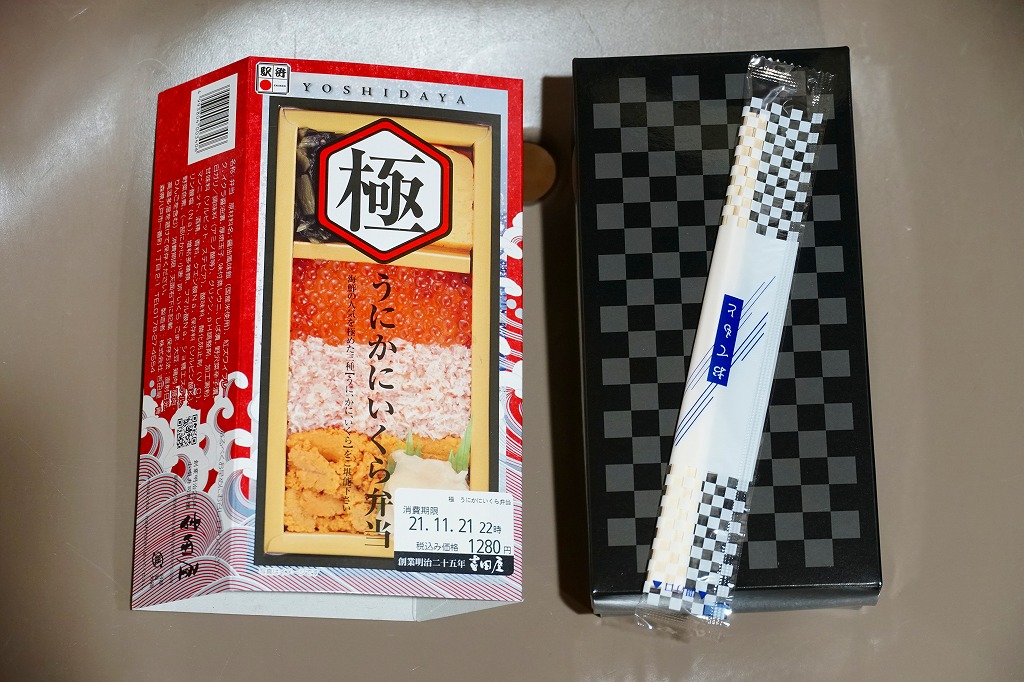 新千歳空港の空弁でおなじみのタイプの商品を、ほぼそっくりコピーした感じ。高価で食べにくく風味は並で、駅弁に類例はないかもしれないが、また買いたい気もしない。しかし東京駅では定番商品のひとつになっている感じ。価格は2010年の購入時で1,100円、2014年時点で1,150円。2017年までの販売か。
