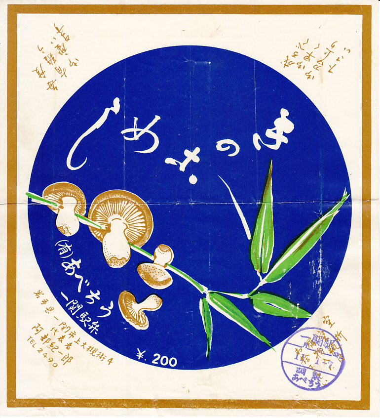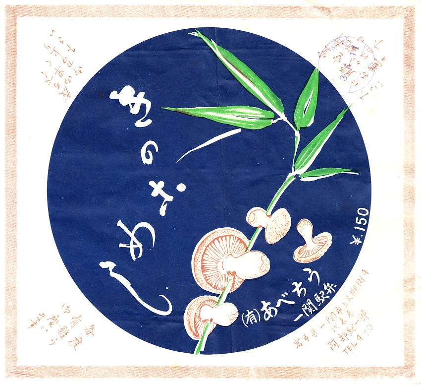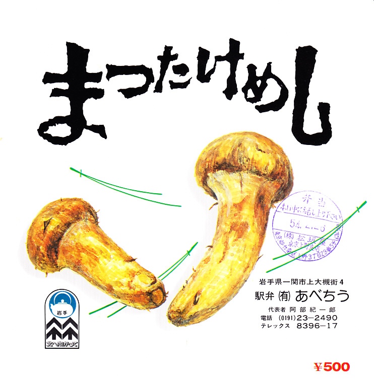 1979(昭和54)年2月26日の調製と思われる、昔の一ノ関駅弁の掛紙。上記の21世紀のものと変わらない、立派なマツタケを描いた絵柄。