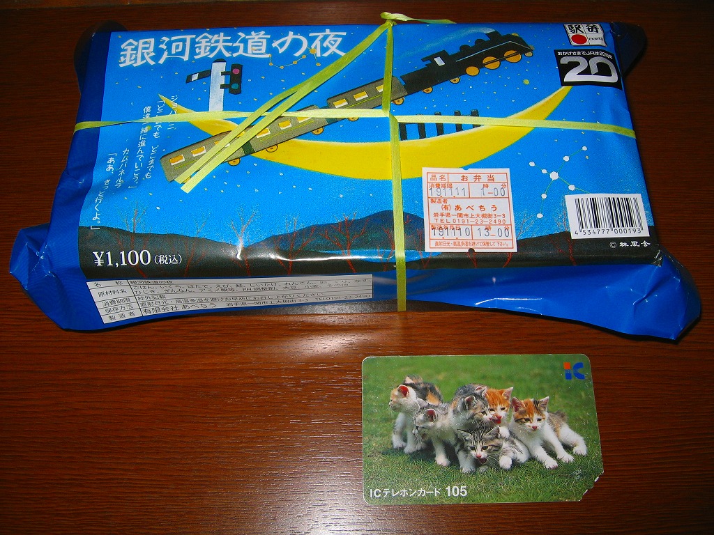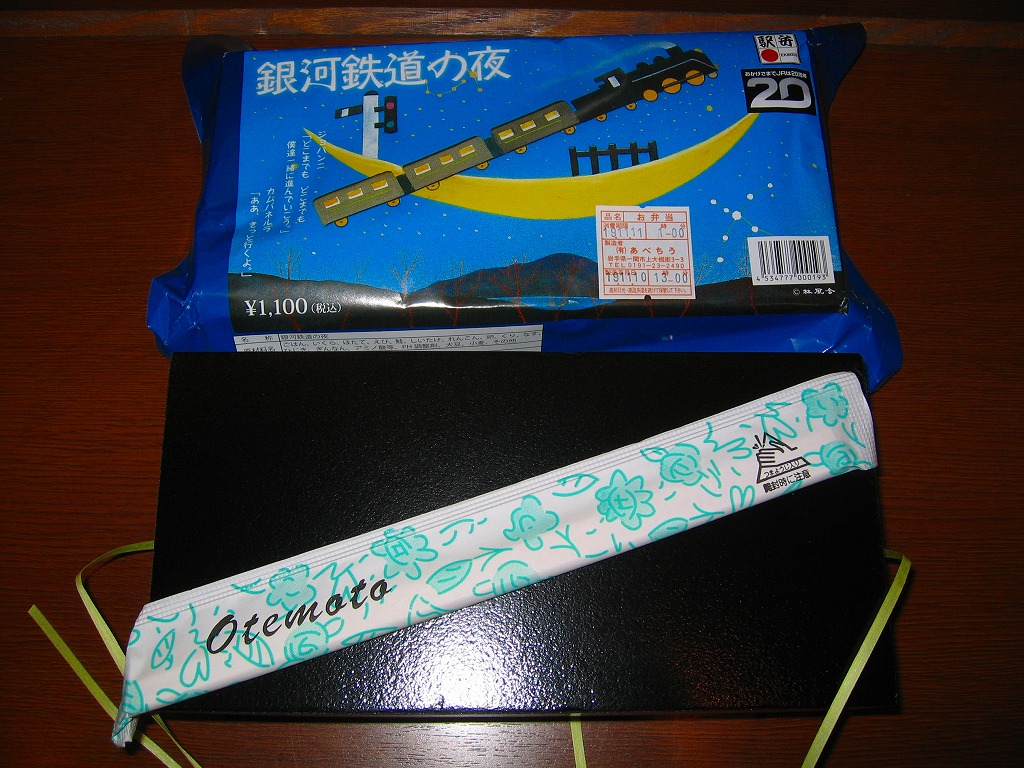 詩人で童話作家で農業指導者でもあった宮沢賢治の、童話の代表作のひとつである「銀河鉄道の夜」は、生前に発表されず没後に草稿の形で残されたもの。こうやって駅弁になったり、この作品できっと参考にされたはずと岩手軽便鉄道の後進であるJR釜石線に「銀河ドリームライン」の愛称が付いたり、東北新幹線並行在来線の第3セクター鉄道に「IGRいわて銀河鉄道」の社名が付いたり、現在に実在する鉄道とも縁の深い作品である。