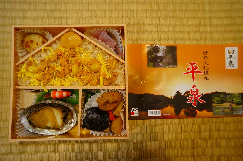 「平泉−仏国土(浄土)を表す建築・庭園及び考古学的遺跡群−」は、2011年6月にフランス・パリで開催されたユネスコの第35回世界遺産委員会で世界文化遺産に登録された。白神山地や白川郷の賑わいを見ながら2001年に暫定リスト入りしたものの、同期の紀伊山地や石見銀山には先を越され、2008年には登録基準に満たないとして登録延期を勧告されたほど、国内の世界遺産で最も難産なものとなった。東日本大震災から3か月後のことであるが、登録報道直後から大勢の観光客が押し寄せており、以前の静かな平泉は当分見られないであろう。調製元が2020年4月に休業のち廃業したため、この駅弁もなくなったはず。