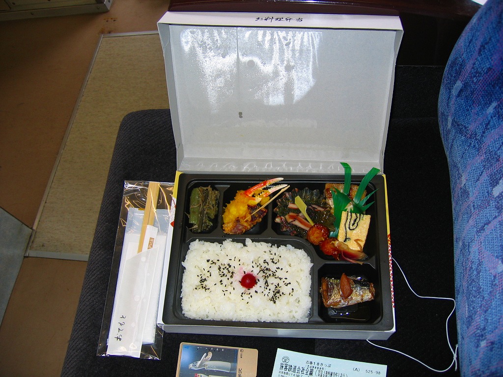 この弁当は、2002年から2004年までの販売か。2011年3月の東日本大震災による三陸鉄道とJR山田線の不通により、「リアス・シーライナー」の設定もなくなったため、この弁当ももう買えないと思う。