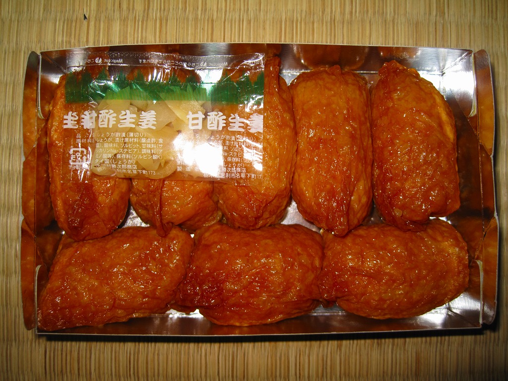 これは駅弁でなく、2011(平成23)年6月4・5日に横浜市内の日本大通で開催されたイベント「2011tvk秋じゃないけど収穫祭」で、テント売りされたお惣菜。握り寿司にぴったりな紙製惣菜容器に、おいなりさんを8個を詰めていた。適度な甘辛や湿り気、もちっとした味の良さに加えて、容器内での収まりの良さにも惚れ惚れする。駅弁屋にも稲荷寿司の名店はあるが、このレベルにはなかなか達しないと思う。
