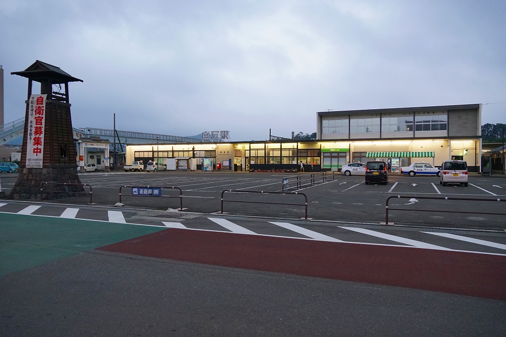 仙台駅から東北本線の電車で約50分。白石市は宮城県の南部で阿武隈川水系の白石川が流れる、人口約3万人の城下町。いずれも小規模ながら、江戸時代に城が置かれ、奥州街道の宿場があり、明治時代に東北本線の駅ができ、戦後昭和に東北道のインターや東北新幹線の駅もでき、市街が維持された。駅弁は1889(明治22)年から1970年代まで岡崎ホテルが販売した。1887(明治20)年12月15日開業、宮城県白石市沢目。