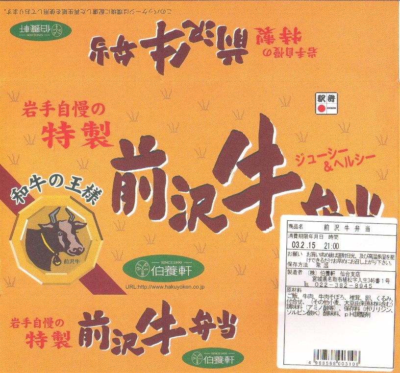 名前も見栄えも中身も既存駅弁のいくつかと被るし、この内容そのものに創作性が乏しいので、味付けか何かに工夫があるのだろう。それでも牛肉の分量は少なめで、名前負けしている印象。この駅弁は販売期間の終了後も販売が続いている。価格は2007年の購入時で1,000円、2014年時点で1,150円。2017年までの販売か。