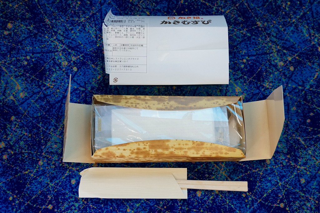 一日で100個以上が売れたという。デパ地下弁当と同じように仙台駅の売店で調製しているからか、風味で作り置きの駅弁より活きの良い感じがした。体感的な販売光景では、何らかの事情か都合により夕方までに既存の駅弁を売り切った後、必要に応じてその場で作って販売できる、便利な商品のように見えた。2022年までの販売か。