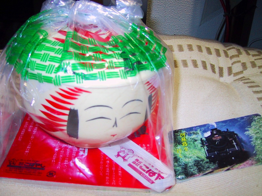 こけしの頭を模したプラスティック製容器を透明な袋に詰める。中身は「ごもく弁当」のとおり、御飯の上に鶏・椎茸・ゴボウ・海老・厚焼卵・蒲鉾・帆立などを積み重ねている。量は少なめで、味は仙台駅弁なので良い。こけしの台になる格好の赤い厚紙では、宮城県のこけしを遠刈田(とおがった)系・鳴子系・作並系・弥治郎系に分類して紹介し、今の観光ガイドではあまり触れられなくなった雑学知識が吸収できる。2010年頃までの販売か。