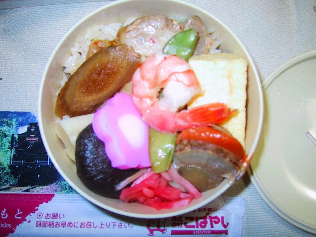 創作駅弁の他の2種類は、日本レストランエンタプライズの「仙山芭蕉めぐり」と「がんこおやじ」。当初は3か月間の期間限定販売を予定していたようだが、「がんこおやじ」を除く2品は2010年時点でも販売が続いた。2010年頃までの販売か。