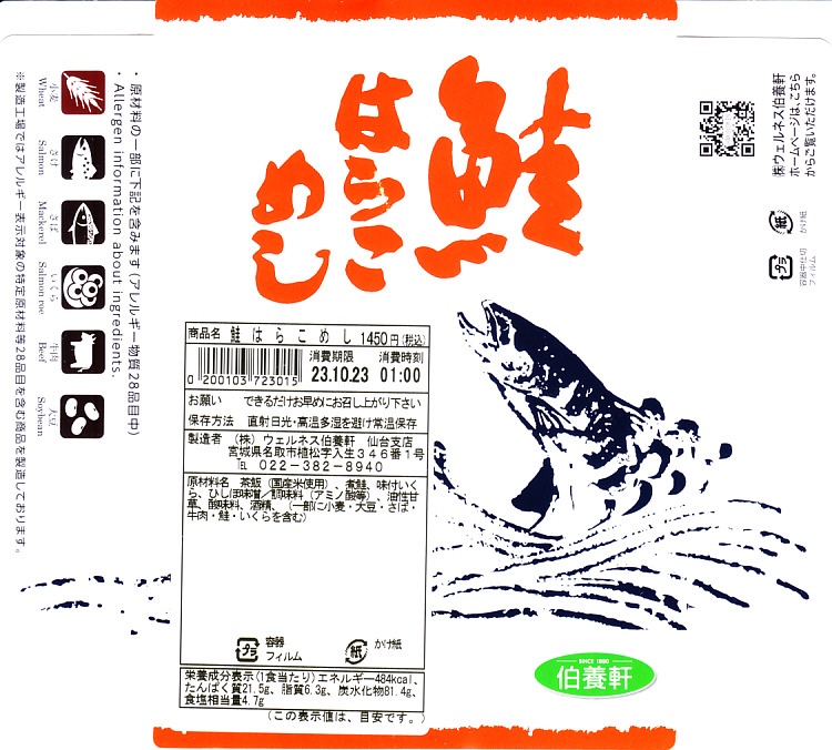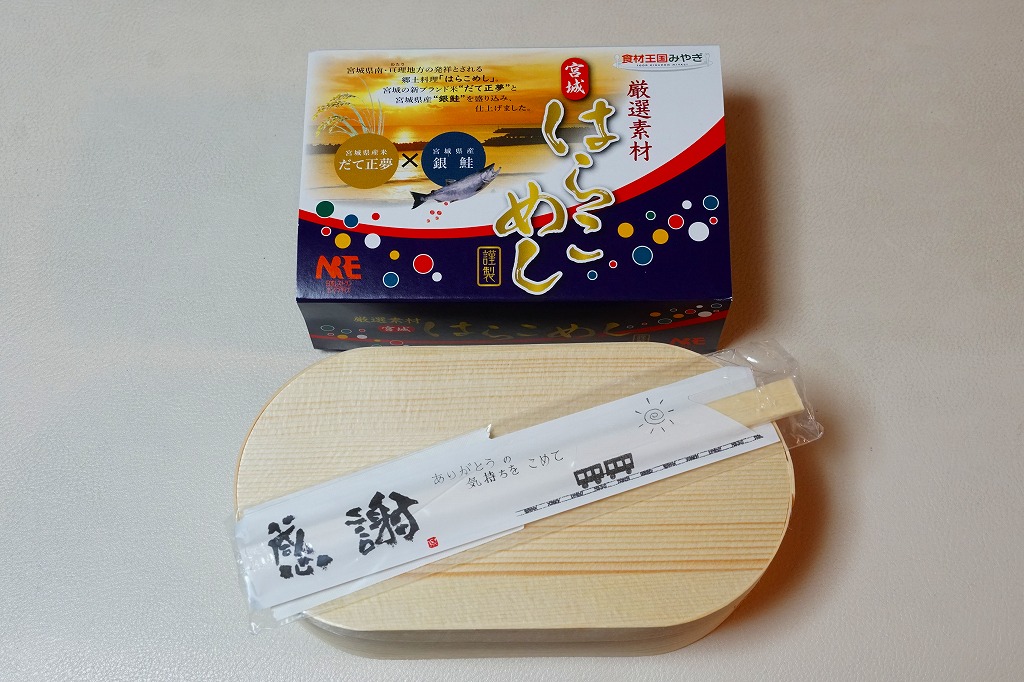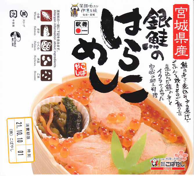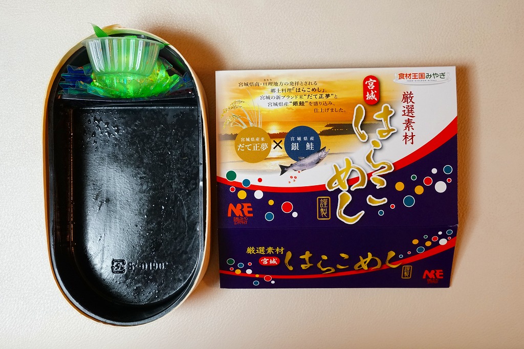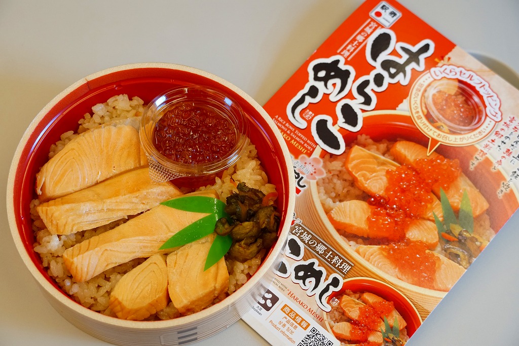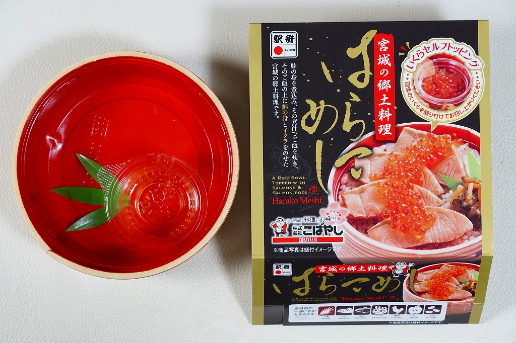2020(令和2)年の8月に発売か。この調製元では約10年ぶりの鮭はらこめし駅弁かもしれない。楕円形のような容器に茶飯を詰め、サケの煮物とイクラの醤油漬で覆い、万来漬を添える。宮城県や亘理町の郷土料理に由来する鮭はらこめしの駅弁として、基本に忠実な内容と見た目どおりの味を持つため、駅弁売店の運営元がちゃんとこれを発注するのであれば、きっと長く売られる駅弁になると思う。価格は2020年の発売時や2021年の購入時で1,250円、2021年12月のリニューアルで1,300円、2023年時点で1,350円、2024年時点で1,580円。7月の「宮城の郷土料理はらこめし」へのリニューアルで終売。