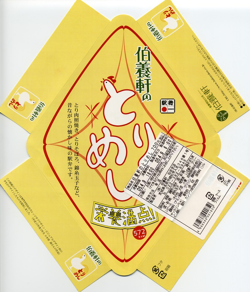 青森県の東北本線野辺地駅で1952(昭和27)年に発売し、長らく名物の駅弁であった「とりめし」が、仙台駅の駅弁になったもの。かつての調製元である伯養軒が、仙台や盛岡や野辺地や青森に支店を持ち、それぞれで違う名前や意匠で同じような鶏飯駅弁を販売していたものを、おそらく2015(平成27)年に仙台駅と青森駅(盛岡駅でも販売)でブランドを同じくしたとみられる。
