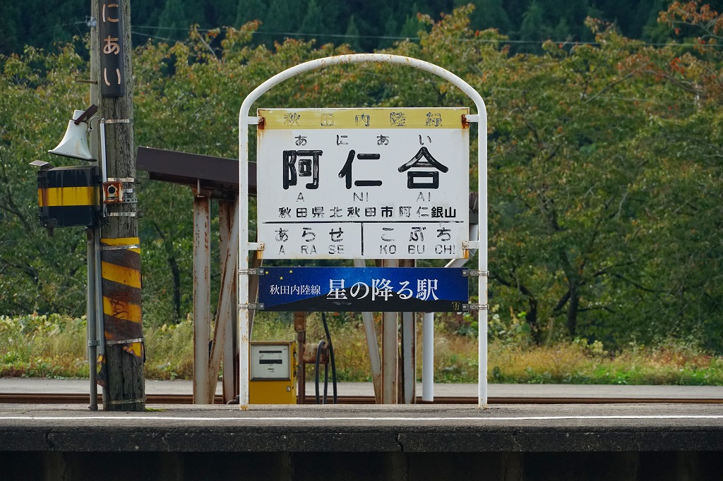 角館駅から秋田内陸線の列車で約1時間半。阿仁合駅がある北秋田市は、2005(平成17)年に4町の合併でできた、人口約3万人の町。阿仁には過去約600年間か400年間に渡り鉱山があったといわれ、江戸時代には銅山で栄えたが、昭和時代に現在の鉄道が開通した頃には廃れた。この駅では平成時代以降何度も、駅弁の発売が記事になり続ける。1936(昭和11)年9月25日開業、秋田県北秋田市阿仁銀山字下新町。