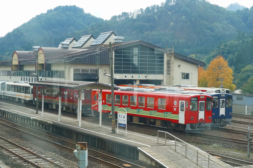 秋田内陸縦貫鉄道は、国鉄の特定地方交通線(廃止対象線)で、1963(昭和38)年10月全通の阿仁合線の鷹ノ巣駅〜比立内駅の46.1kmと、1971(昭和46)年11月に開業した角館線の角館駅〜松葉駅の19.2kmを、1986(昭和61)年11月に引き継いだ第3セクター鉄道。1989(平成元)年4月には日本鉄道建設公団の建設中止線である鷹角線(ようかくせん)の比立内駅〜松葉駅の29.0kmを開業させ、全線94.2kmが開通し、地元で80年来の悲願を実現した。