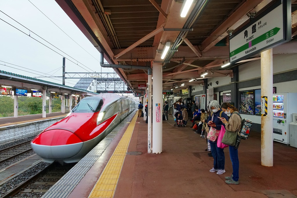 秋田駅から秋田新幹線こまち号で40分強。角館駅がある仙北市は、秋田県の中部の東で2005年に2町1村が合併してできた、人口約2万人の市。角館は戦国時代からの城下町で、武家屋敷と桜並木で年に200万人以上の観光客を集める。角館駅の駅弁はないが、駅のコンビニに秋田駅弁の一部や大館駅弁が入荷する。1921(大正10)年7月30日開業、秋田県仙北市角館町中菅沢。