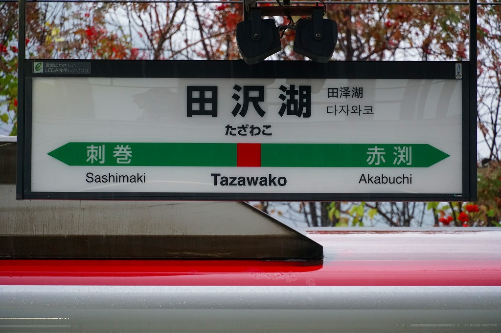 秋田駅から秋田新幹線こまち号で約1時間。1923年の開業時は生保内(おぼない)駅であり、1956年に1町2村の合併で田沢湖町ができ、1966年には駅名も田沢湖駅になり、同年の田沢湖線の全通で田沢湖の玄関口となった。田沢湖駅の駅弁はないが、駅の売店で秋田駅弁の一部や大館駅弁が売られる。1923(大正12)年8月31日開業、秋田県仙北市田沢湖生保内字男坂。