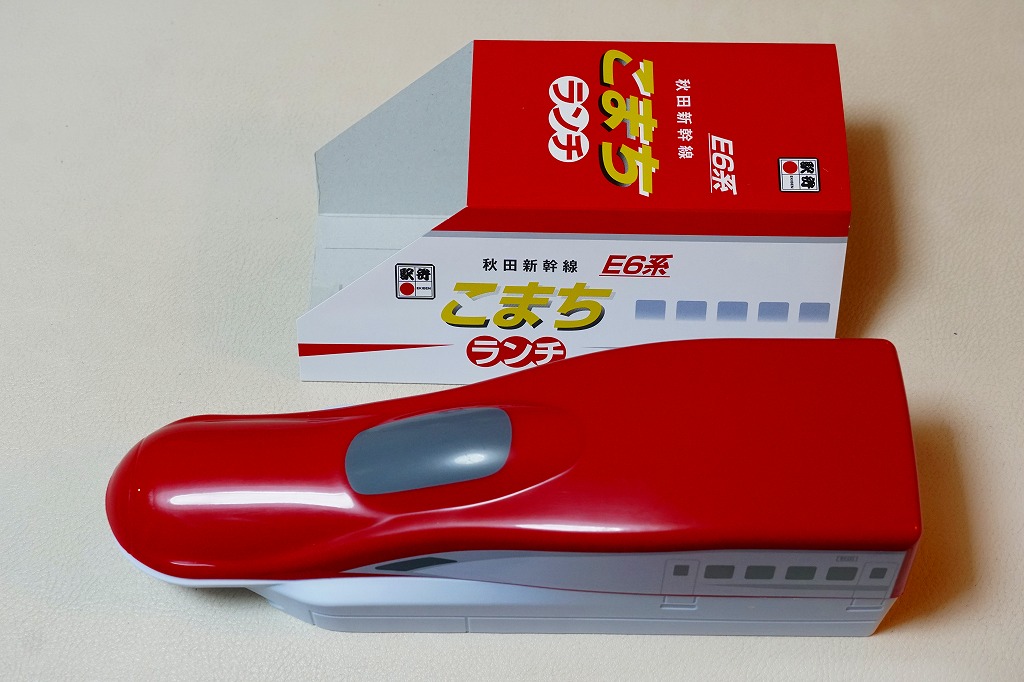 2013(平成25)年3月16日のE6系新幹線電車の営業運行開始に合わせ、「E6系スーパーこまちランチ」の名前で発売。翌2014(平成26)年3月ダイヤ改正での列車名の変更により、「E6系こまちランチ」へ改称。先頭車両の形状を模したプラスティック製容器を使う。