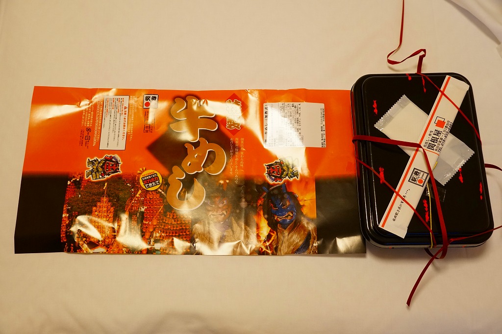 上記の駅弁「特製牛めし」の、加熱機能付き容器版。四角い容器に通常版とまったく同じ中身を詰め、秋田駅でおそらく冬季限定の駅弁として販売する。