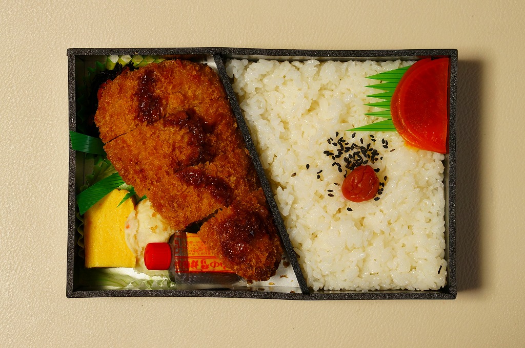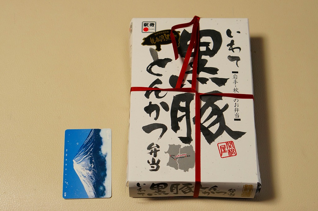 2014(平成26)年の秋に秋田駅や東京駅で発売か。駅弁の名前に「いわて」とあり、岩手県岩泉町の畜産業者がつくるブランド豚の使用をうたいながら、これは岩手県や盛岡駅の駅弁でなく、秋田県の秋田駅の駅弁屋の商品。日の丸御飯とトンカツ1枚に、ソース、玉子焼、ポテトサラダ、大根漬物などを添える。価格は2015年の購入時で1,000円、2019年時点で1,080円、2022年3月から1,150円、2024年9月から1,200円。