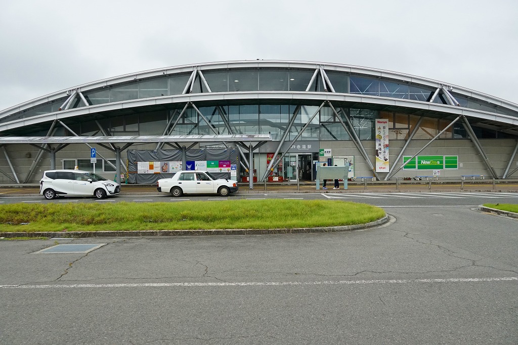東京駅から山形新幹線「つばさ」で約2時間半。赤湯駅がある南陽市は、山形県の中南部の置賜(おきたま)地方の盆地にある、人口約3万人の温泉町あるいは宿場町。赤湯温泉、鳥帽子山、熊野大社などの観光地がある。駅弁はないが、駅のコンビニで米沢駅弁の一部が売られるほか、2000年代に地元の弁当が売られたことがある。1900(明治33)年4月21日開業、山形県南陽市郡山。