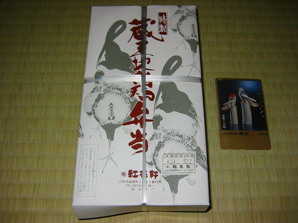 下記の「特製蔵王地鶏弁当」、つまり過去の山形駅弁「九十九鶏弁当」の、2011年時点での姿だそうな。名前と価格と見栄えはだいぶ変わったが、引き続き山形駅ビル「エスパル」1階で販売されているという。2017年11月の駅ビル改装を前に閉店した模様。
