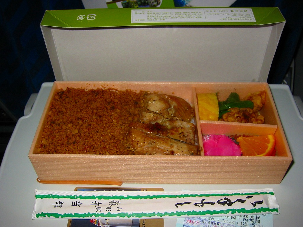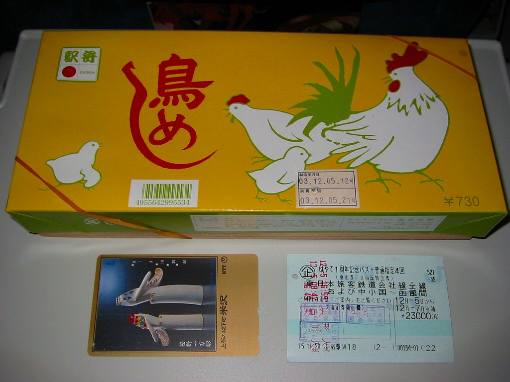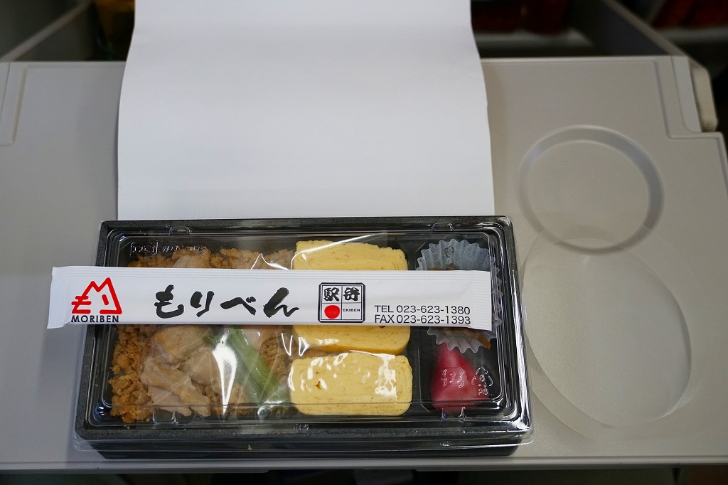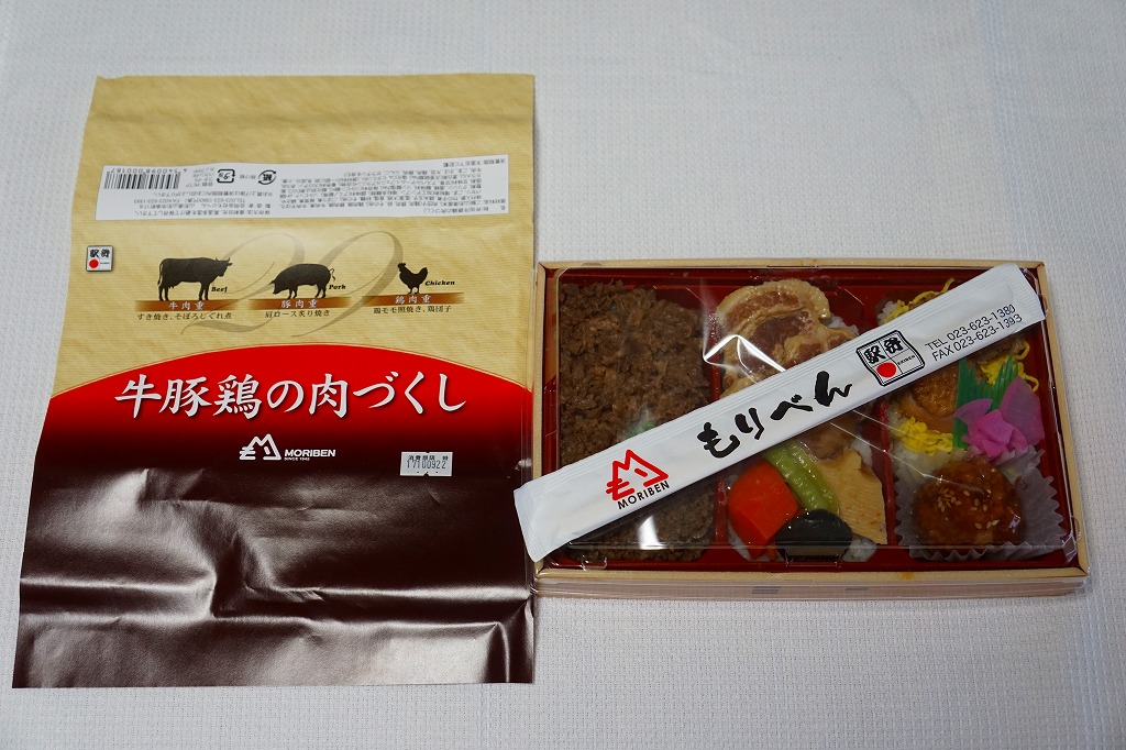 これは東京駅で購入。食品表示を見てびっくり。掛紙にある調製元のロゴマークを見て、山形駅の駅弁だと思ったら、「販売者:合同会社もりべん」「製造者:株式会社松川弁当店」とある。前者は山形駅の駅弁屋、後者は米沢駅の駅弁屋。山形駅弁の調製を米沢駅の駅弁屋が受け持つようになったのか、東京へ送る分を製造委託したのだろうか。半年間ほどの販売か。