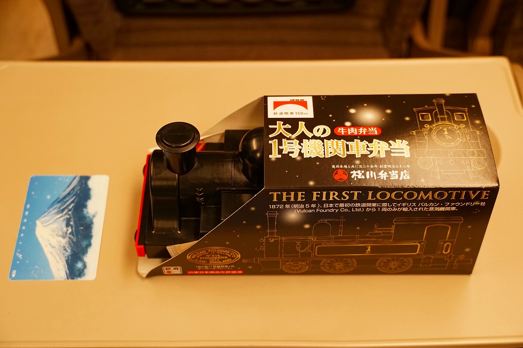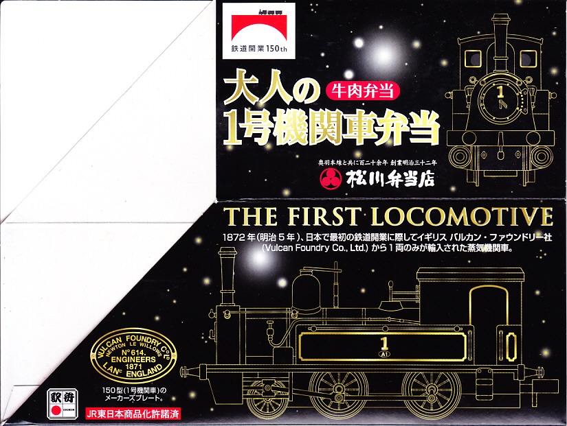 以下、1号機関車弁当の紹介文を転記する。鉄道博物館で静態展示される「1号機関車」、後の国鉄150形蒸気機関車は、1872(明治5)年の日本の鉄道開業の際にイギリスから輸入された蒸気機関車5形式10両のうちのひとつである。日本へ最初に到着したので「1」の番号を付けて新橋と横濱を結び、しかし性能や状態があまり良くない車両だったようで、関西や中京を転々とし、1911(明治43)年に長崎県の島原鉄道へ払い下げられた。